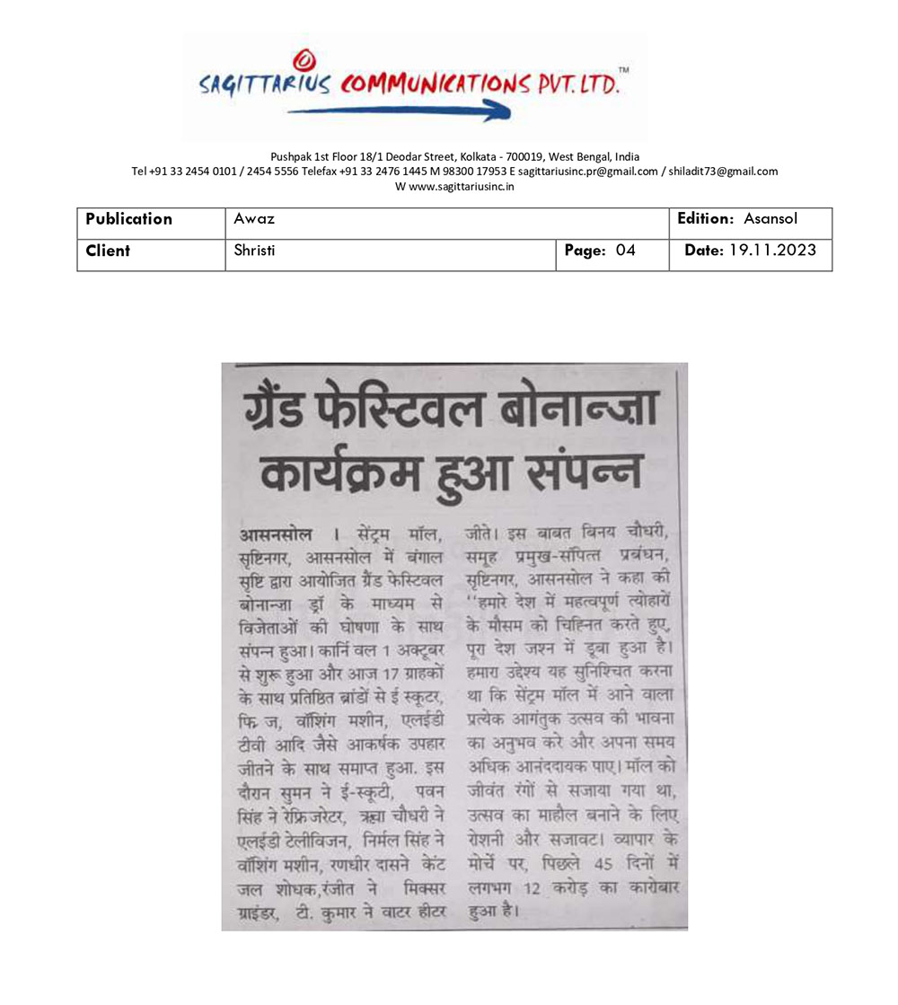3rd floor, Sentrum Mall, Shristinagar, Asansol - 713305, West Bengal